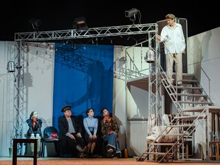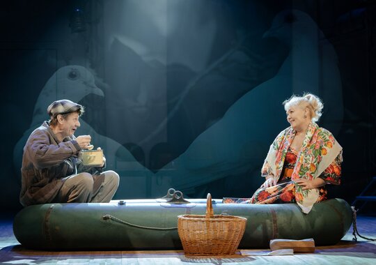 Фильм «Любовь и голуби» стал частью нашего культурного кода, а диалоги персонажей разобраны на цитаты. Именно поэтому режиссёр Тимур Насиров не соревнуется ни с фильмом, ни с другими театральными постановками легендарной пьесы. «Любовь и голуби» для него — повод в очередной раз поговорить со зрителем о чуде театра, о том, как рождается мир спектакля, как он проникает в сердца и души зрителей.