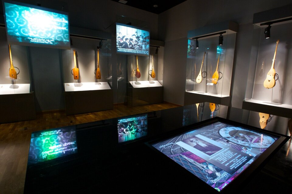 В музее функционируют 9 экспозиционных залов, в которых посетители смогут увидеть уникальные музыкальные инструменты — желбуаз, адырну, шертер, а также многочисленные разновидности широко распространённых — домбру, кобыза, сыбызгы и др.