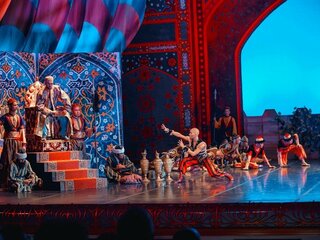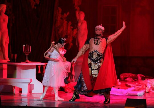 «Бахчисарайский фонтан» — лирический балет-поэма. Композиционно балет построен на сопоставлении двух различных культур - восточной и славянской. Идея постановки балета «Бахчисарайский фонтан» впервые возникла у драматурга Николая Волкова. В лирических строках пушкинской поэмы было столько скрытого драматизма, что у Волкова родилась необходимость рассказать предысторию, за которую смело взялся сценарист. Досочинив первый акт, в балетную канву были введены польский замок и его хозяин, юный Вацлав - антипод крымского хана Гирея. При этом все события первого акта как бы вычитаны между пушкинских строк, взяты из атмосферы поэмы, из кратких, но ясных намеков. Поэтому он органично сочетается в спектакле с последующими «пушкинскими» событиями. Музыка, хореография и живописность балета - все эти элементы образуют уникальный синтез, который превращает пушкинскую историю в истинный балетный шедевр. Невероятная гармония этих элементов погружает каждого зрителя в неведомый мир польского праздника, тишины и сложных перипетий ханского гарема и непревзойденной по красоте истории любви. *Театр оставляет за собой право вносить изменения в состав исполнителей.