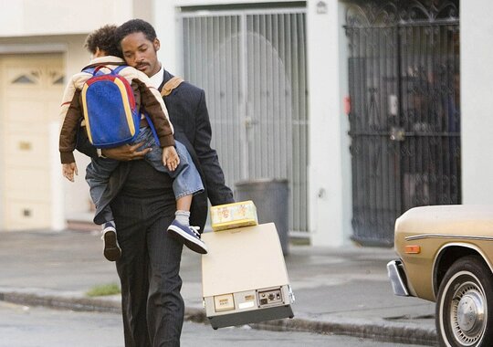 Крис Гарднер – отец-одиночка. Воспитывая пятилетнего сына, Крис изо всех сил старается сделать так, чтобы ребенок рос счастливым. Работая продавцом, он не может оплатить квартиру, и их выселяют. Оказавшись на улице, но не желая сдаваться, отец устраивается стажёром в брокерскую компанию, рассчитывая получить должность специалиста. Только на протяжении стажировки он не будет получать никаких денег, а стажировка длится 6 месяцев...