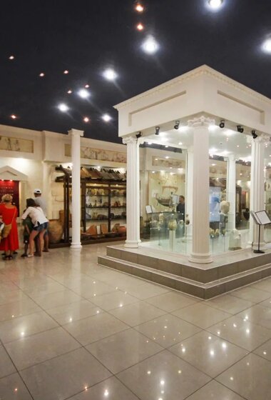 Экспозиция знакомит с материальной и духовной культурой Горгиппии. В ней представлены образцы керамической и стеклянной посуды, терракотовые статуэтки, мраморные плиты с надписями, изделия из бронзы и железа, монеты, предметы культа. Отдельные разделы экспозиции рассказывают о традиционном устройстве древнегреческого дома. Особое внимание уделено рассказу о некрополе (древнем кладбище) Горгиппии. Помимо находок из погребений и надгробных памятников с рельефами и надписями здесь представлены фрагменты фресок знаменитого «Склепа Геракла» — гробницы знатного горгиппийского семейства, открытой при раскопках в Анапе в 1975 г.