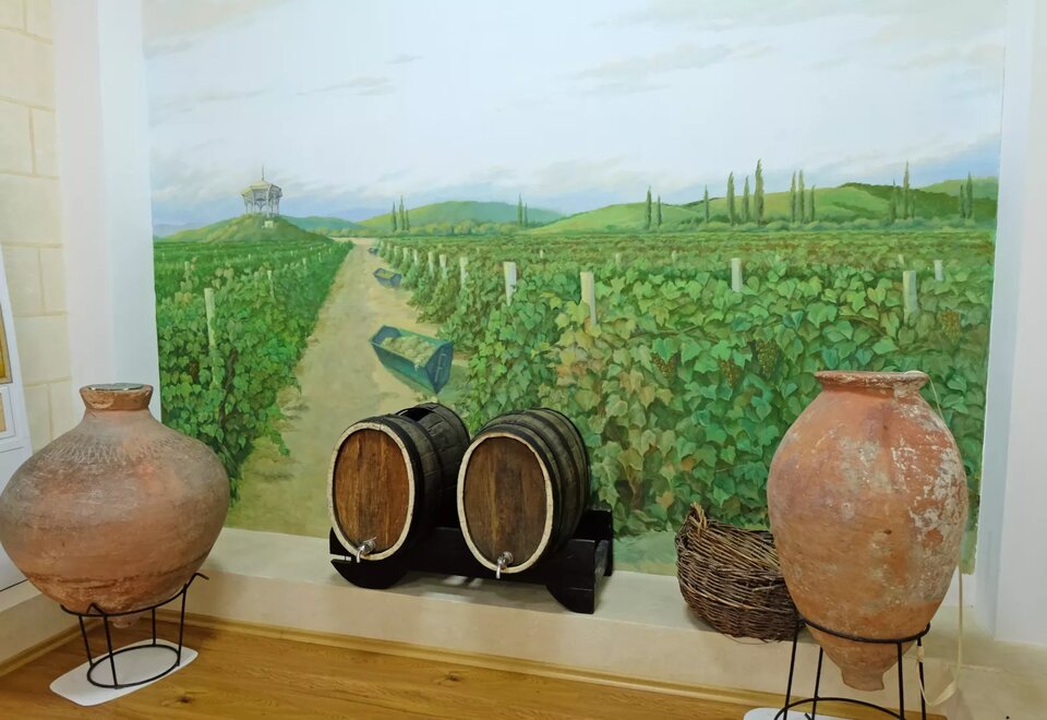 Земли Анапы исключительно благоприятны для роста виноградной лозы и созревания янтарных ягод. История виноделия берёт своё начало с древнейших времён. В советский период в Анапе действовали 17 виноградно-винодельческих хозяйств, продукция семи винзаводов не раз была удостоена высших наград российских и международных конкурсов. В экспозиции представлены уникальные экспонаты того периода: дипломы, грамоты, награды, лабораторная посуда, бондарные изделия, образцы продукции, фотографии и документы известных виноделов Анапы.