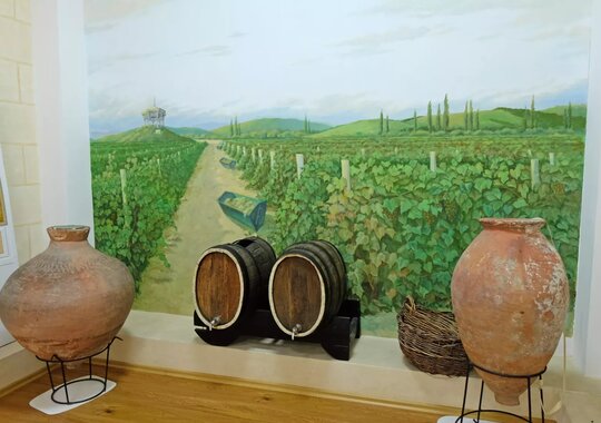 Земли Анапы исключительно благоприятны для роста виноградной лозы и созревания янтарных ягод. История виноделия берёт своё начало с древнейших времён. В советский период в Анапе действовали 17 виноградно-винодельческих хозяйств, продукция семи винзаводов не раз была удостоена высших наград российских и международных конкурсов. В экспозиции представлены уникальные экспонаты того периода: дипломы, грамоты, награды, лабораторная посуда, бондарные изделия, образцы продукции, фотографии и документы известных виноделов Анапы.
