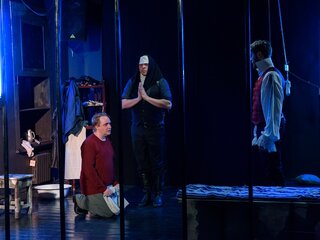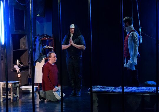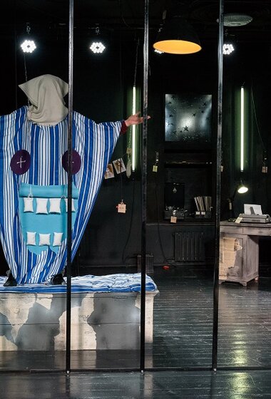 Действие в спектакле по пьесе всемирно известного ирландского драматурга Мартина МакДонаха «Человек-подушка» происходит в полицейском участке, в комнате дознания. Двое профессиональных полицейских расследуют ряд серийных убийств, в которых подозреваются писатель Катурян и его старший брат Михал.