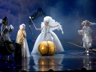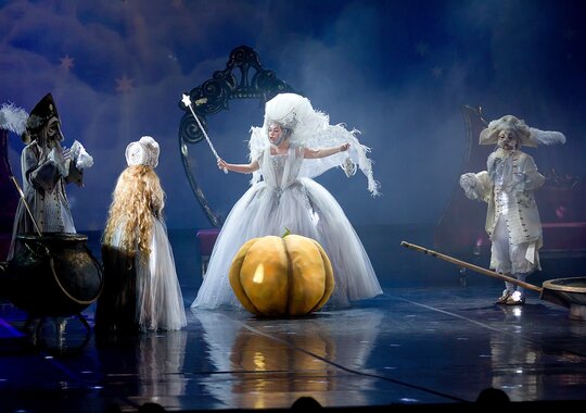 Маленьких зрителей впечатлят удивительные перевоплощения, которые произойдут прямо у всех на глазах. Тыква в мгновения ока обернётся сказочной каретой, мышки станут лошадьми, а верные кот и пёс превратятся в кучера и лакея. Но самое главное, Золушка сменит ветхий свой наряд на ослепительное бальное платье.