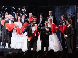 В опере богато использованы ритмы и мелодии бытовой музыки — главным образом вальса, то веселого и грациозного, то драматичного и скорбного. Режиссер-постановщик Константин Балакин и художник Елена Вершинина создали новое сценическое воплощение хорошо известного сюжета!