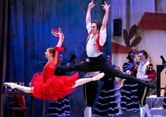 Таверна Лоренцо в отсутствии хозяина. Среди веселящихся — Китри и Базиль. Вбегающий в таверну Лоренцо, наконец, находит влюбленных. Он разгневан и спешит выдать Китри замуж за Гамаша. Находчивый Базиль разыгрывает сцену самоубийства. Китри умоляет отца выполнить предсмертное желание Базиля и благословить их любовь. Гамаш протестует, но Дон Кихот взывает к великодушию трактирщика. Как только Лоренцо выполняет желание дочери, Базиль оживает.