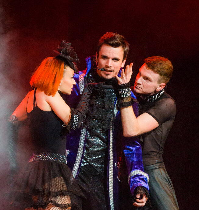 В шоу принимают участие артисты балета московских мюзиклов и скрипач- виртуоз Владимир Ветт.