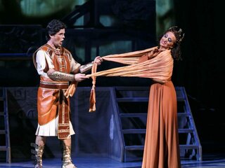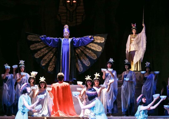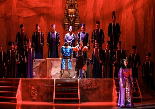 Теплое дыхание пустыни и прохладные воды Нила. Величавые фигуры пирамид и шатры раскидистых пальм, в тени которых так приятно вздремнуть знойным безветренным днем. Впрочем, сегодня вам будет не до сна... Идет война Египта и Эфиопии. Начальник дворцовой стражи Радамес, назначенный полководцем египетского войска, и эфиопская царевна Аида, попавшая в рабство к египтянам, любят друг друга. Однако египетская принцесса Амнерис тоже положила глаз на Радамеса. Кто победит в кровопролитной борьбе — Эфиопия или Египет? Кому достанется сердце бравого воина — темнокожей пленнице или дочери фараона? Что перевесит — любовная страсть или чувство долга перед народом?