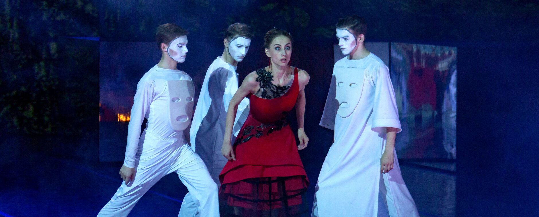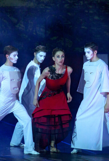 «В балете есть три мистических персонажа, которые являются прототипами Карениной, Вронского и Каренина. Они демонстрируют внутренние переживания главных героев, являются связующей нитью спектакля. Тогда люди были воспитаны по-другому. То, что Вронский не говорит Анне или то, что Каренин не может при людях сказать своей жене – все это показано через мистических персонажей», – отмечает балетмейстер-постановщик Вера Арбузова.