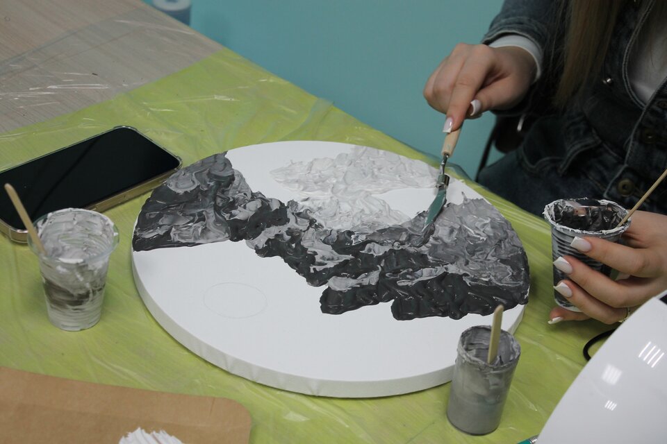 На протяжении 1,5 часа совместного творчества вы окунётесь в волшебный мир текстур и цветов, научитесь основам работы с текстурной пастой: от подготовки основания до создания объемных элементов, которые будут привлекать внимание. Каждое движение кисти или мастихина будет творческим, и вы сами создадите уникальную композицию.
