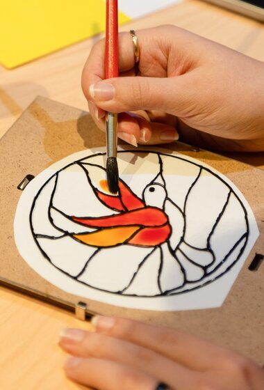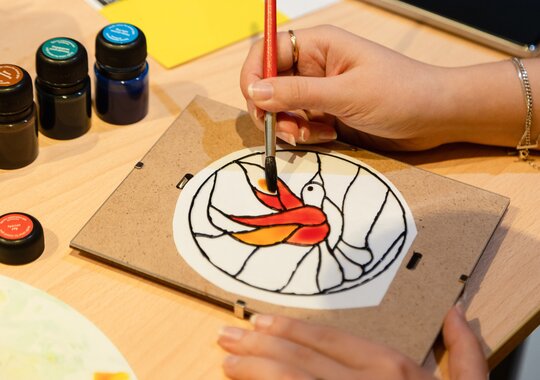 На мастер-классе участники познакомятся с экспозицией и создадут миниатюрный вариант картины на стекле с помощью специализированных художественных материалов.