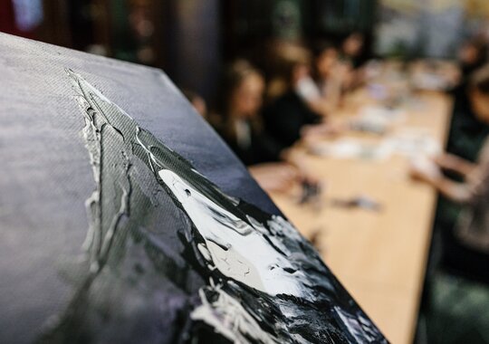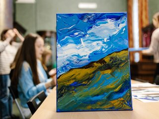 Участники мастер-класса создадут по-настоящему яркое произведение абстрактного искусства и распишут с помощью ярких акриловых красок хлопковый холст на подрамнике, который станет символом творчества, созидания и украсит интерьер.
