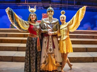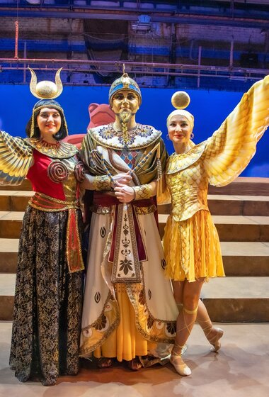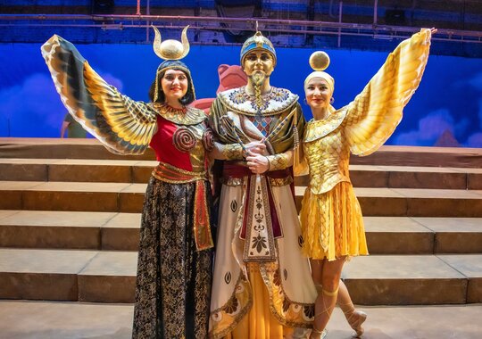 Постановочную команду спектакля возглавили музыкальный руководитель Евгений Волынский и режиссер Мариинского театра, заслуженный деятель искусств России Иркин Габитов. Атмосферу времен фараонов воссоздали декорации и костюмы народного художника России Вячеслава Окунева. Художник по свету – заслуженный работник культуры России, дипломант Российской национальной театральной премии «Золотая маска» Ирина Вторникова. Хореография от народного артиста России Юрия Клевцова.