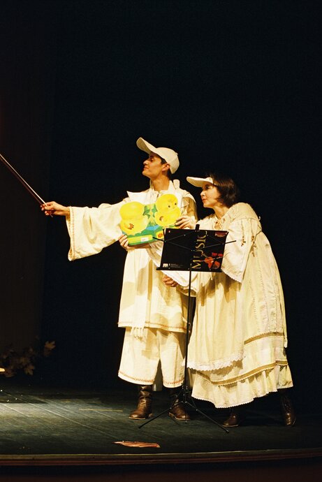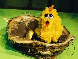 Эта трогательная история о том, как мрачный и обозленный Волк постепенно учится любить слабого и беззащитного цыпленка и, в конце концов, становится ему замечательным… папой. Это спектакль о том, что нежность и заботливая привязанность способны растопить лед самого холодного сердца, а любовь и доброта помогают обрести смысл жизни.