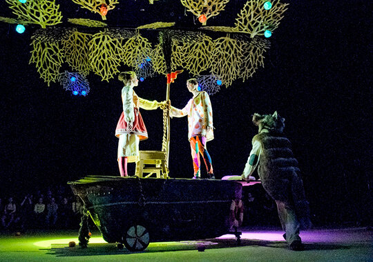 Зрители вместе с героями сказки будут пробираться сквозь волшебный лес, где обитают невиданные звери, Кощей, Баба-яга, Шамаханская царица, Леший, Соловей-разбойник, Черный ворон и многие другие персонажи русских народных сказок. Но самое главное – дорогу вместе с главными героями будут определять зрители Молодежного театра! Только от них будет зависеть, с кем столкнутся на своем пути Иван-царевич и Серый волк. Ведь цель этого путешествия – спасти Василису Премудрую от Змея Горыныча. Стать непосредственным участником событий позволит и необычное расположение мест в зале. Зрители смогут наблюдать не только за новой сказкой, но и за реакций всех остальных гостей – так будет интереснее и легче принимать решение в судьбе царевича и Волка. А в результате захватывающее приключение подарит бурю эмоций и ярких впечатлений не только детям, но и взрослым! Автором оригинальной истории – современного прочтения русских народных сказок – является Светлана Баженова, молодой драматург, ученица Николая Коляды.
