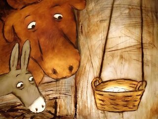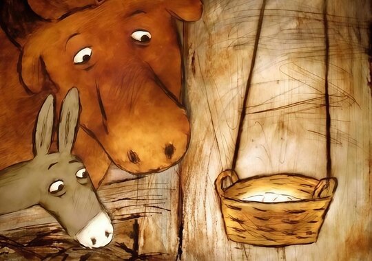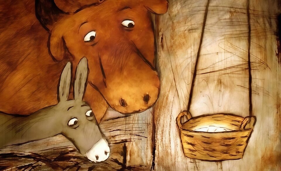 Спектакль, выполненный в технике песочной живописи с включением пантомимы, расскажет историю о рождении младенца Христа с необычной стороны. Героями этого спектакля станут вол и осёл, наблюдавшие за Иисусом в колыбели и ставшие свидетелями его первых чудес.