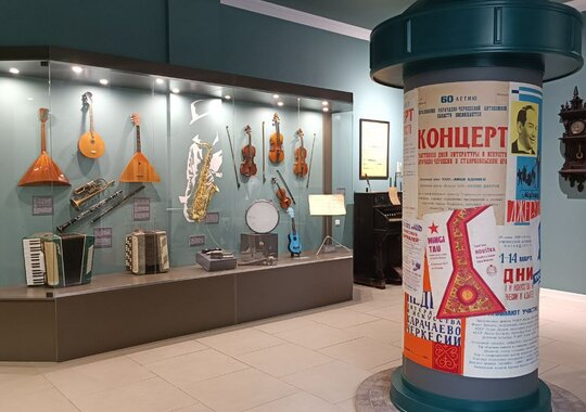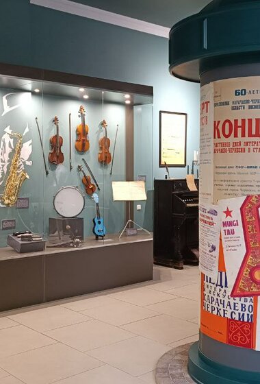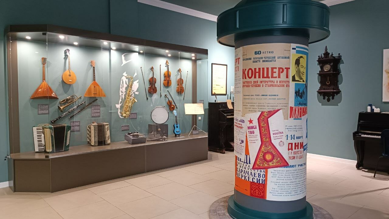 В витринах экспозиции представлены музыкальные инструменты, изготовленные местными мастерами, такие как флейты, скрипки, кавказские барабаны, трещотки, национальные гармошки, а также инструменты, бытовавшие в семьях жителей Карачаево-Черкесии, такие как фисгармония, колесная лира, балалайки, духовые инструменты и радиоаппаратура. Саксофон, варган, понтийская лира — все эти удивительные музыкальные инструменты смогут увидеть посетители выставки.