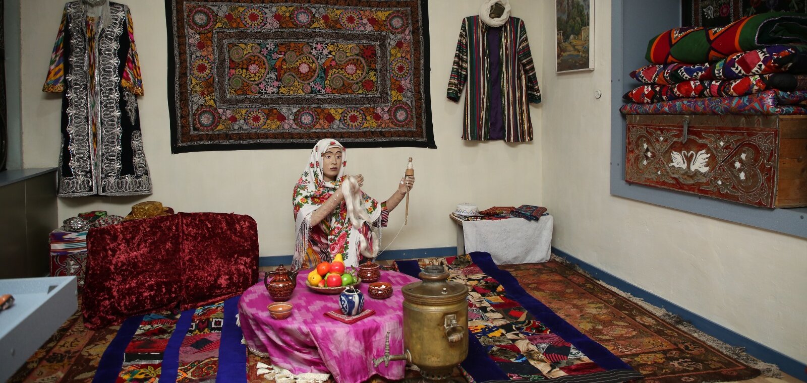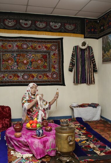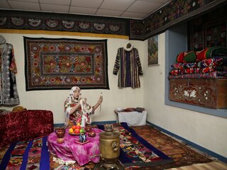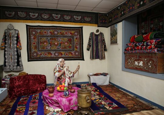 «Өзбек этнографиясы» экспозициялық залы: Өзбек халқының ерте замандардан келе жатқан руханияты мен салт-дәстүрі, тұрмыс-тіршілігі және тұрмыста қолданған заттары, түрлі әшекей-бұйымдары, киімдері, тоқыма заттары, ыдыстары, музыкалық аспаптары қойылған.