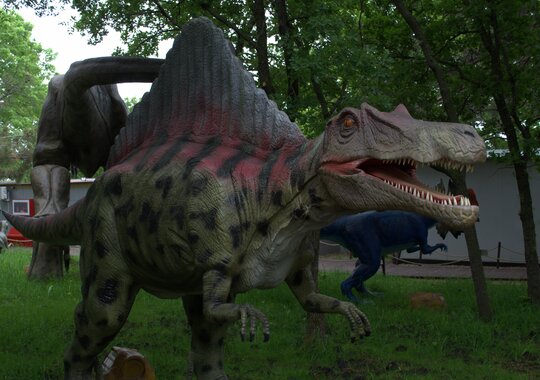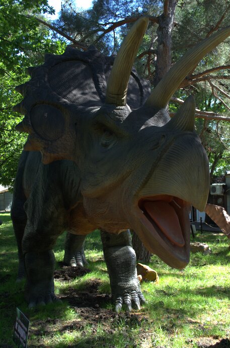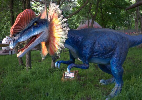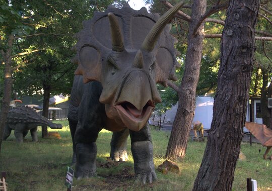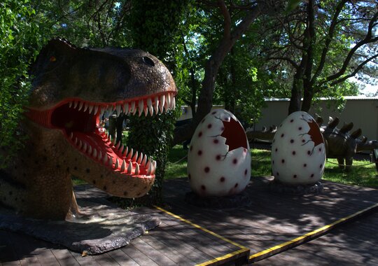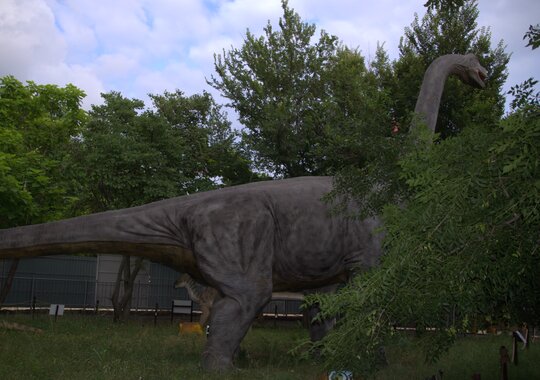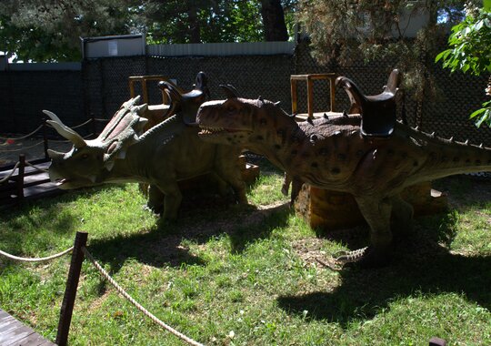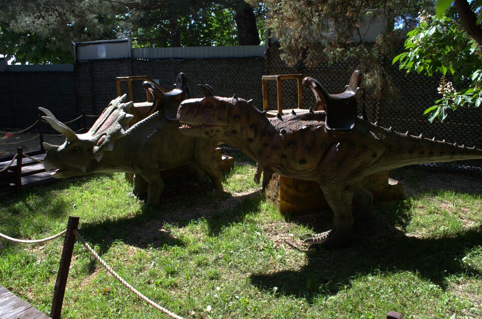 Познавательный парк динозавров «Затерянный мир» приглашает всех жителей и гостей города-курорта Геленджик совершить экскурсию на миллионы лет назад. В нашем парке представлены аниматронные двигающиеся экспонаты динозавров до 8 метров в высоту и до 17-ти метров в длину! Посетители парка могут ощутить всеми чувствами реальность Эры динозавров! Наши динозавры могут издавать естественные звуки, дышать, шевелить разными частями тела. Вы можете посетить этих гигантских существ, с которыми мы знакомы по фильмам и книгам. Познавательный парк расположен на 1300 квадратных метров земли среди реликтовых пицундских сосен и смешанного леса. Несмотря на огромный возраст динозавров, лишь только в середине XIX века начались первые целенаправленные раскопки останков динозавров. А с сегодняшнего дня этим увлекательным занятием может заняться каждый гость познавательного парка «Затерянный мир»! На территории парка воссоздана зона раскопок древних динозавров с чистейшим белоснежным песком. Окунитесь в мир палеонтологии всей семьей! Если вы мечтали оседлать динозавра верхом, то сделать это очень просто! Нужно просто прийти в познавательный парк «Затерянный мир» и осуществить вашу мечту! Что может быть проще? В парке работают павильоны сувениров и аркадных игр для всех возрастов! В темное время суток парк освещается современной подсветкой, при которой экспонаты выглядят еще более реалистично! График работы: ежедневно 10:00–22:00. Дети до 3-х лет, дети инвалиды в сопровождении одного взрослого, ветераны ВОВ, инвалиды I группы проходят бесплатно.