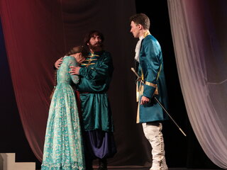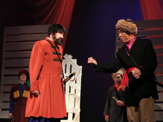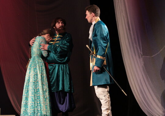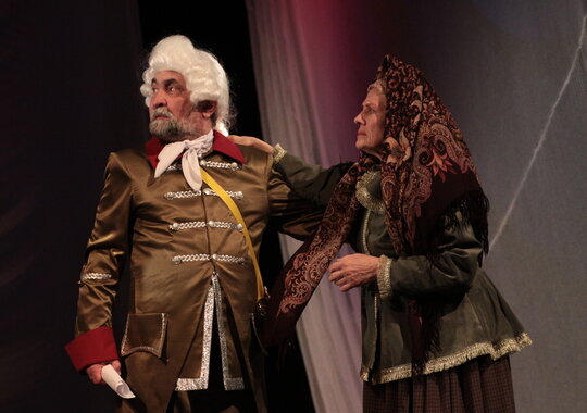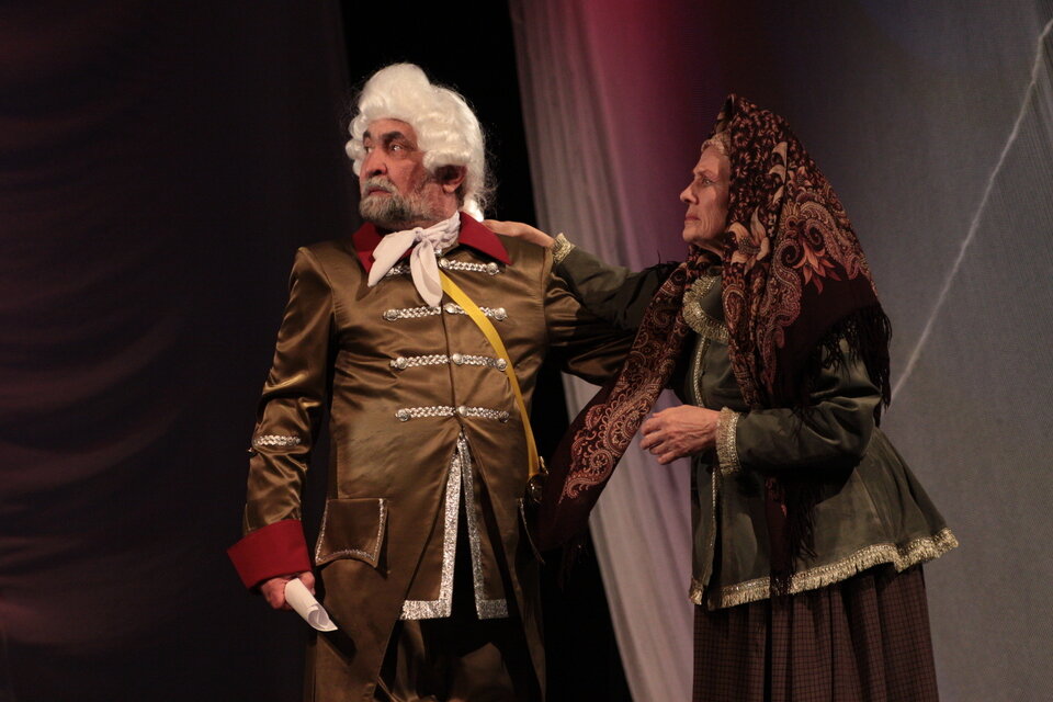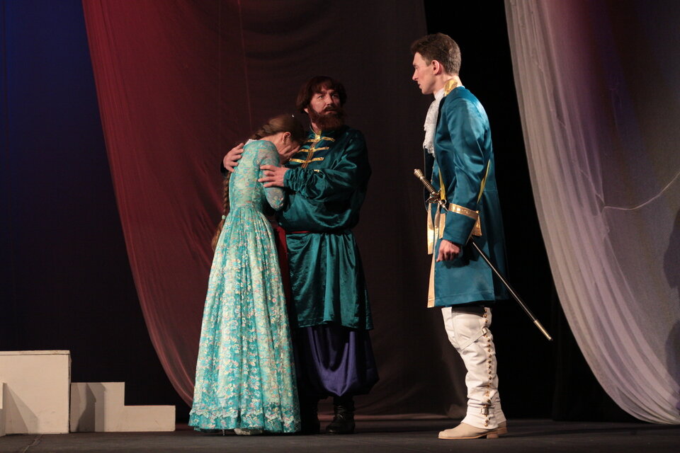 Удивительно чистая, трогательная история любви Гринева и Маши Мироновой на фоне русского бунта, «бессмысленного и беспощадного». Шпаги звон, честь, благородство, предательство, горе, радость и, конечно, любовь. Любовь, побеждающая болезни, придающая силы, вдохновляющая на подвиги, заставляющая парить над миром. Любовь юных, чистых, только еще вступающих в жизнь людей. Дуэт трогательных влюбленных образов Гринева и Маши помогают создать неповторимое настроение спектакля, открывая для зрителей новые грани такого знакомого произведения. Вся атмосфера в спектакле практически создана звуками и музыкой Григория Свиридова, Петра Чайковского, Густава Малера. Спектакль, поставленный в классическом ключе, чётко по тексту Александра Сергеевича, будет доступен и понятен любому зрителю. Спектакль идет на русском языке.