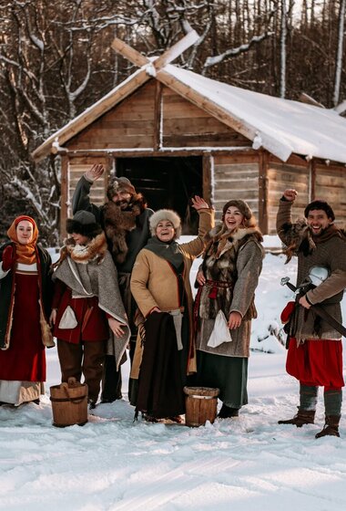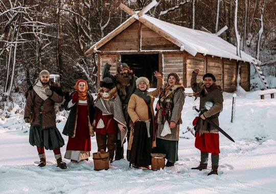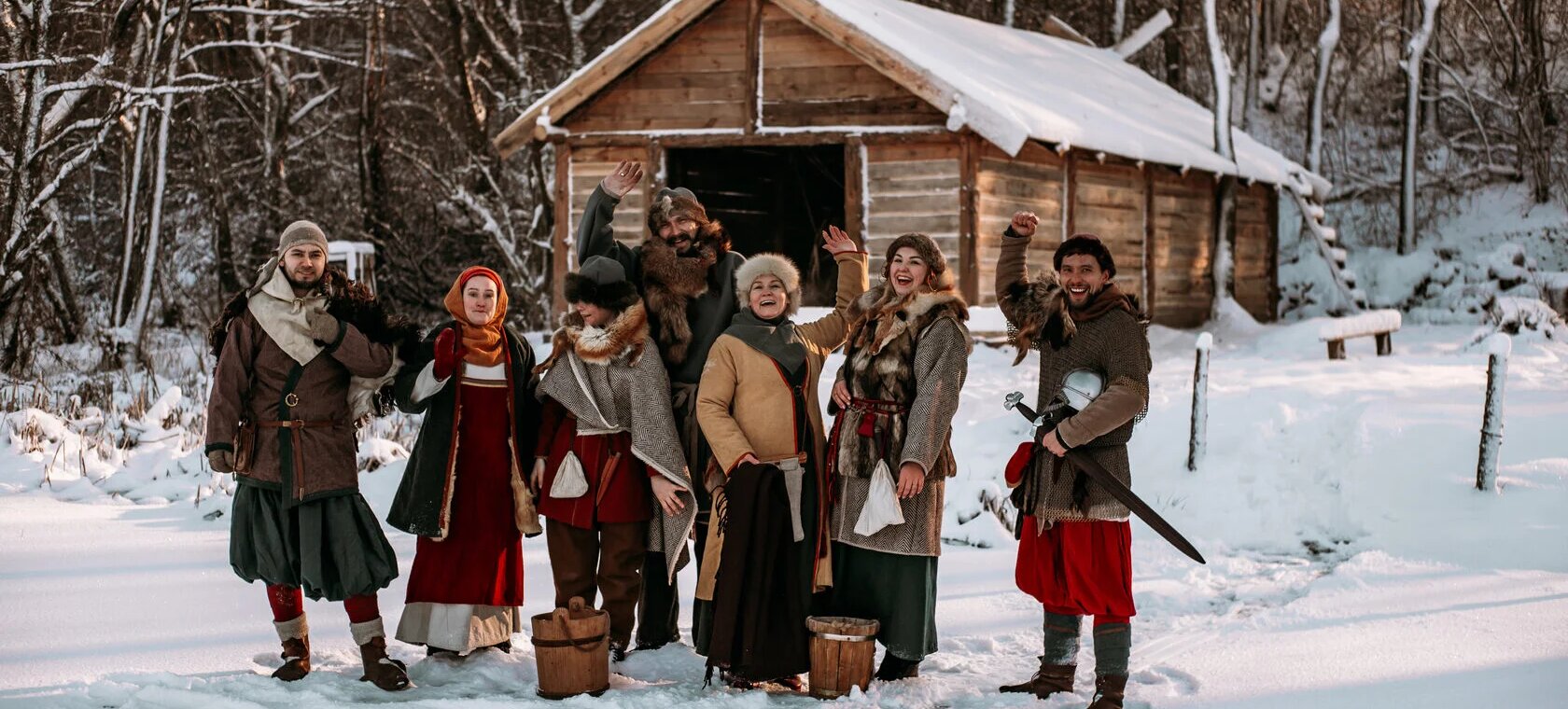 Зима для викингов – лучшее время, чтобы гулять и пировать с друзьями и близкими после долгих и трудных походов!Приезжайте к нам в атмосферу раннего средневековья и проведите своё время как настоящие викинги!