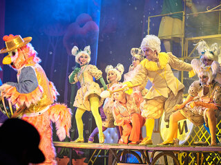 Создатели семейного мюзикла «Бременские музыканты» сохранили в постановке романтику и задор советского мультфильма 70-х, адаптировав материал для сценической версии. Эффектные костюмы, яркие декорации, танцы и трюки, а также живая музыка и вокал добавили красок и привнесли в историю еще больше волшебства и энергии. А главное, в спектакле прозвучат легендарные хиты на музыку Геннадия Гладкова и стихи Юрия Энтина, которые предстанут в оригинальных современных аранжировках.