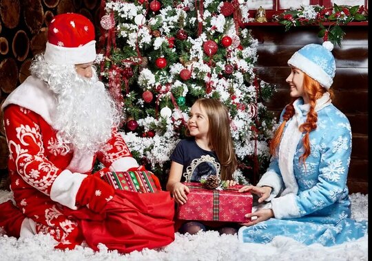 Фотосессия с Дедом Морозом и Снегурочкой и козликом Серебряное копытце.
