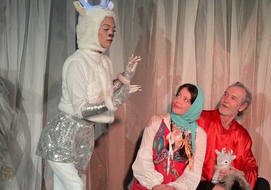 Сказка о волшебстве «Серебряное копытце», по сказу Бажова. Сказка о доброте, милосердии и душевной щедрости. Это история удивительной дружбы маленькой девочки, её кошки Мурёнки и волшебного козлика Серебряное копытце. Сказка об ожидании чуда, которое случится, если верить в него и делать добро, о мечте однажды увидеть сказочного оленя и драгоценные камушки, летящие из под его копытца.