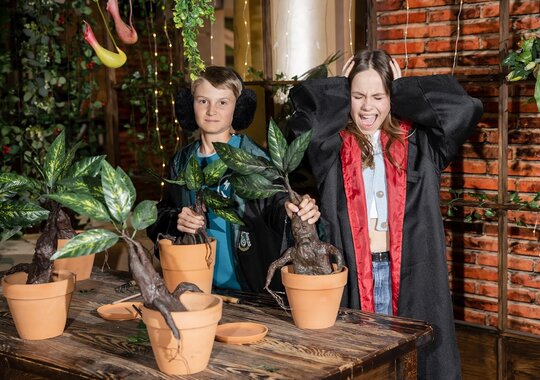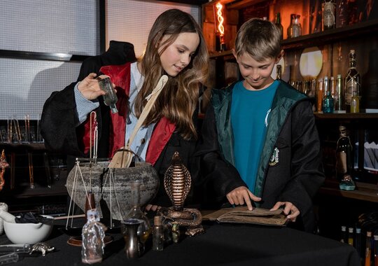 Главное преимущество выставки — её интерактивный формат. Здесь можно потрогать каждый экспонат, посетить мастер-класс по изготовлению книжного амулета, слайма, волшебной палочки или попасть на урок зельеварения.