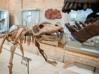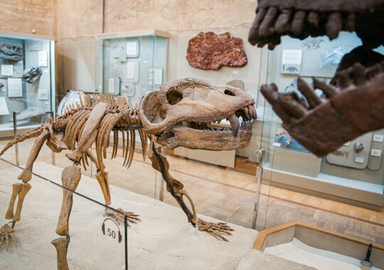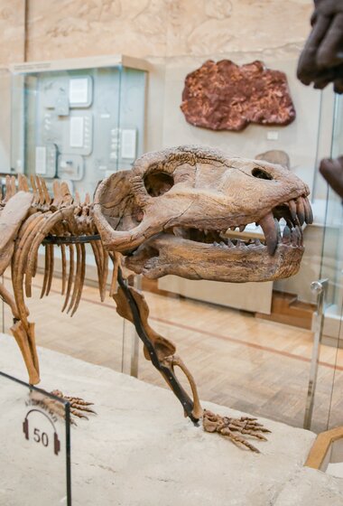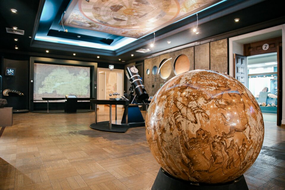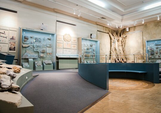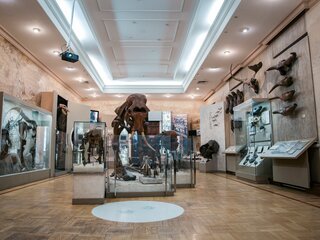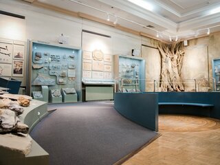 График работы: вт–чт 10:00–18:00, пт 11:00-20:00, сб–вс 10:00–18:00, пн — выходной. Экспозиция Музея естественной истории Татарстана размещается на двух этажах в двенадцати залах. В музее представлен большой объем интересной информации из разных областей геологических знаний. Коллекция метеоритов, интерактивный телескоп, космические весы позволят приобщиться к тайнам Вселенной. Сверкающие гранями кристаллов и отполированных срезов минералогические диковинки со всего света собраны в зале «Минералы Земли». Гипотезы возникновения жизни, древнейшие обитатели планеты, первые позвоночные животные и наземные растения, представлены в залах «Начало пути» и «Мир древней жизни». О черном золоте планеты расскажут коллекции образцов нефти и пород-коллекторов, действующая модель грязевого вулкана и интерактивная скважина. О полезных ископаемых Татарстана и способах их добычи можно узнать в зале «Кладовая недр». В палеонтологических залах второго этажа представлены основные этапы становления позвоночных: первые рыбы, древнейшие амфибии, зверообразные ящеры, морские рептилии, динозавры, представители последних крупных оледенений — мамонт, пещерный медведь, шерстистый носорог, и, наконец, человек разумный. В канву палеонтологических образцов удачно встроены интерактивные блоки, позволяющие в игровой форме обратить внимание юных посетителей на разные аспекты палеонтологических знаний. «Доисторический аквариум» наглядно продемонстрирует размеры и рацион древних рыб; «следовая дорожка» — пример палеонтологической реконструкции древних животных; «палеонтологическая песочница» приобщит к полевым будням палеонтолога.