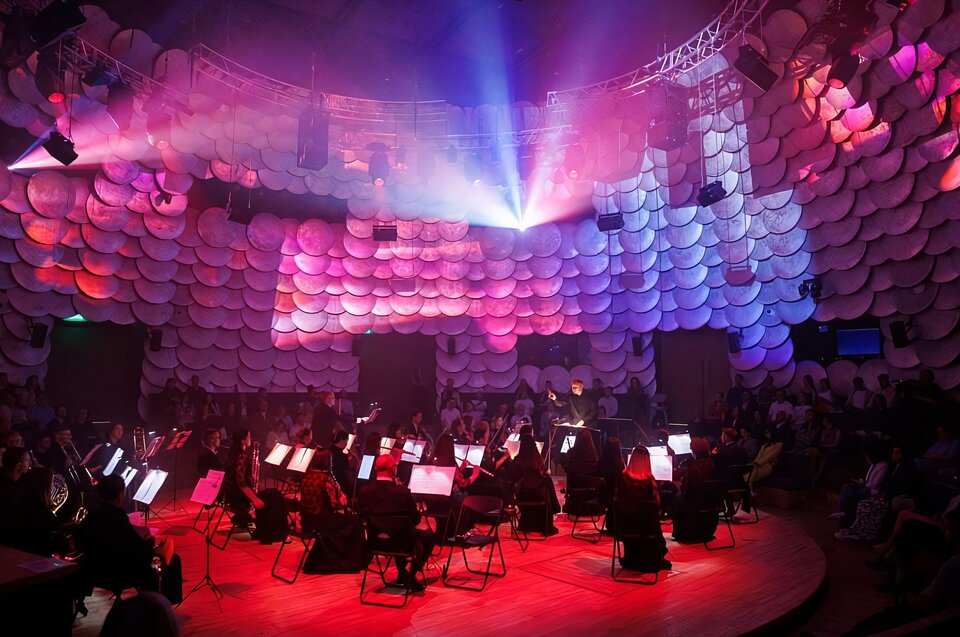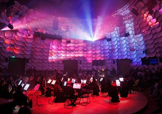 В новом здании театра Камала показ аудиовизуального перформанса «Яктылык моңы» («Мелодия света»). Проект представили в Восточном зале с круглой сценой. Он объединяет в себе звучание классической и современной музыки в исполнении симфонического оркестра и новых мультимедийных технологий.