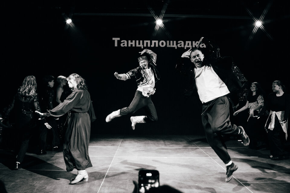 Участников «Танцплощадки» — из двух разных поколений — приглашали через опен-колл. При этом их опыт в танце был совсем не важен — важно было желание танцевать. Это спектакль для казанцев, у которых есть или была мечта о танце, но прежде не было возможности ее реализовать.