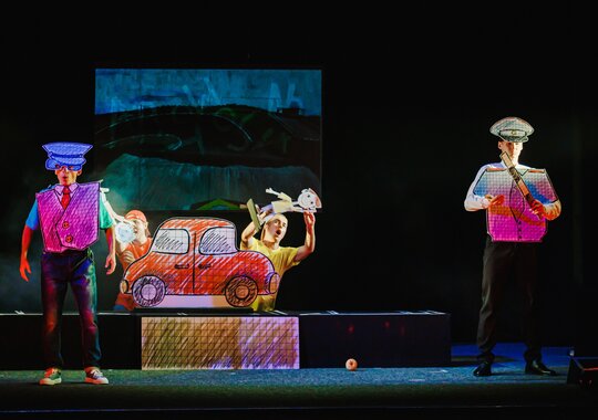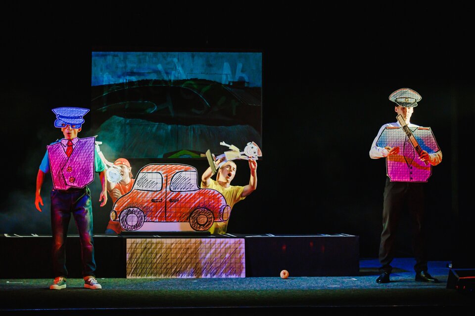 В центре внимания спектакля — два брата, Мишка и Стас, их проделки и забавные приключения в городе, на даче, в поезде и даже дома.