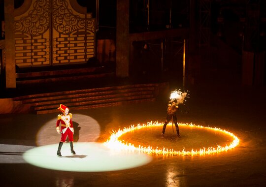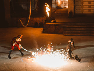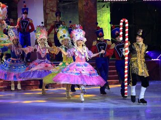 Разве можно представить себе новогодние дни без сказочной истории про Щелкунчика? Чтобы вновь окунуться в эту атмосферу новогоднего чуда, нужно всего лишь сходить на ледовое шоу «Щелкунчик» по сказке Гофмана. В программе принимают участие Олимпийские чемпионы. Спектакль уже несколько лет идет с оглушительным успехом по стране. За это время все детали зрелищного представления успели отточить до идеала. В шоу продумана каждая мелочь: яркие костюмы, которые специально для «Щелкунчика» были созданы во Франции, внушительные декорации, многоуровневая сценография, хореография и актерская игра фигуристов. Отдельное внимание в шоу уделяется спецэффектам, благодаря которым на льду создается настоящее волшебство. На ледовом поле пылают языки настоящего пламени, в котором погибает злодей — Мышиный король. «Щелкунчик» — это новогоднее яркое представление, которое откроет двери в мир сказки и волшебства и детям, и взрослым. Ведь это шоу, как и все остальные ледовые спектакли Ильи Авербуха, создано для того, чтобы удивлять публику и дарить ей счастье. Воздушные гимнасты, ловкие акробаты, лучшие вокалисты, исполняющие инструментальные партии классического балета Чайковского, безупречное мастерство и актерский талант фигуристов — все это не оставит равнодушным ни одного зрителя «Щелкунчика». В состав исполнителей могут быть внесены изменения без дополнительного уведомления. Продолжительность: 1 час 10 минут