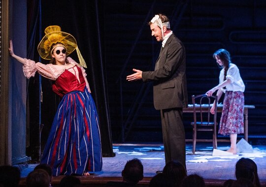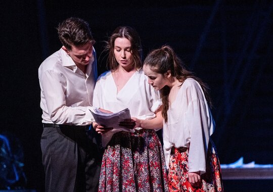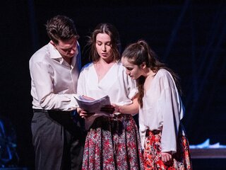 Спектакль «Барышня-крестьянка», появившийся в Казанском ТЮЗе в результате лаборатории «Театр у школьной доски», в полной мере сохраняет шутливую иронию пушкинского текста, но напрямую обращается к современному зрителю.