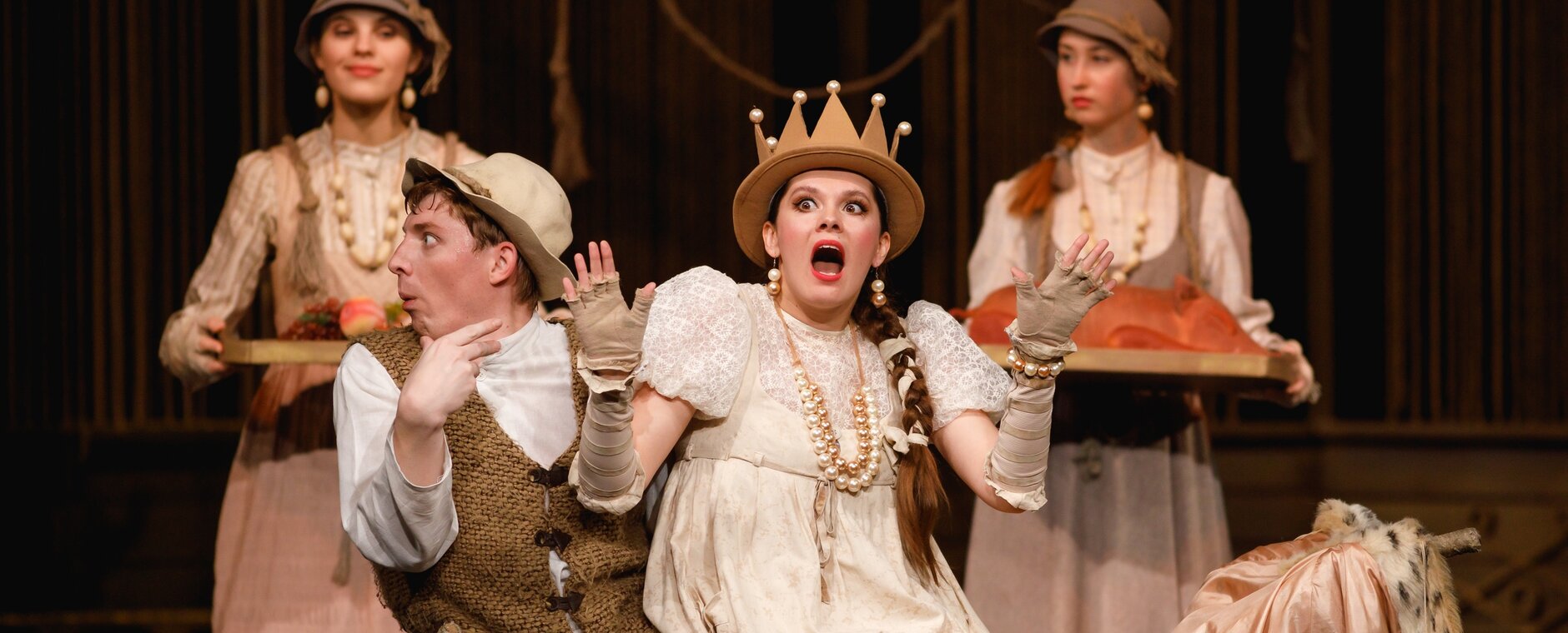 Сказку Льва Устинова «Иван-дурак и черти», написанную им по произведению Л. Н. Толстого, художественный руководитель театра Александр Славутский поставил с молодым поколением качаловцев. Простодушного и работящего Иван-дурака во что бы то ни стало решили одолеть черти – уж слишком много Иван работает, чертям выспаться не дает. Но любая чертовская каверза Ивану нипочем. Рядом с ним верные друзья – сестра Маланья и пес Полкан – и песня, с которой всегда веселее. Стильный, музыкальный и веселый спектакль понравится и детям, и их родителям.