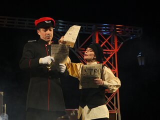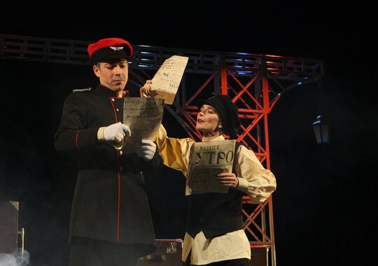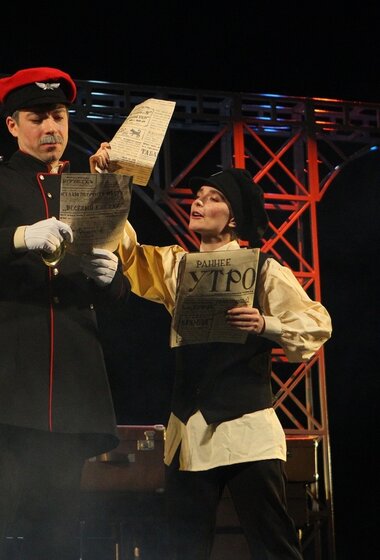 Постановка решена в традициях вахтанговской школы «фантастического реализма», в которой есть место буффонаде, гротеску, фарсу. В ней есть над чем посмеяться и над чем задуматься.