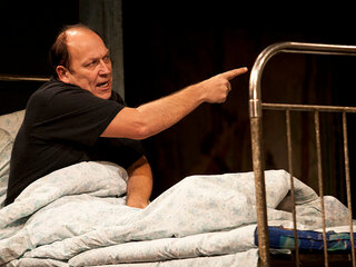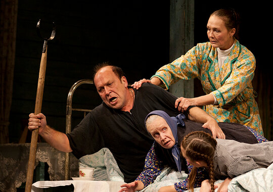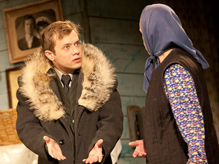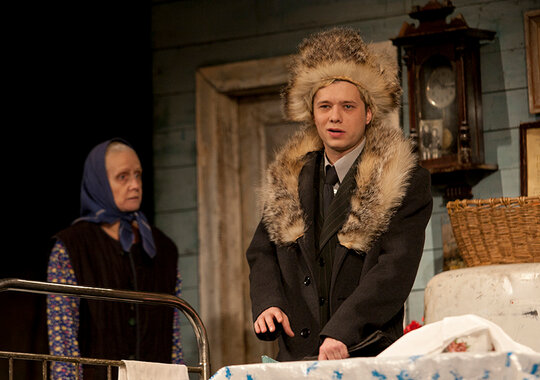 Еще один спектакль-долгожитель качаловского театра про художника, оформляющего деревенский клуб. Заведующий клубом определяет его на постой и, дабы избежать со стороны приезжего ухаживаний за хозяйской дочкой, к которой тот питает симпатию, объявляет ему о сумасшествии хозяев. На этом и строятся одна за другой комические ситуации, неожиданно, казалось бы, из ничего возникающие по ходу спектакля.