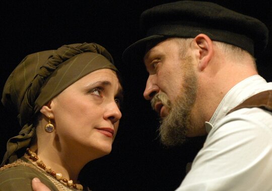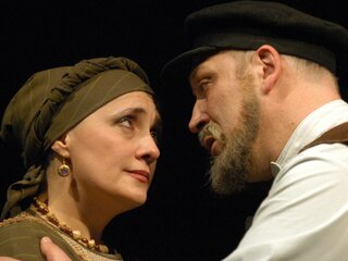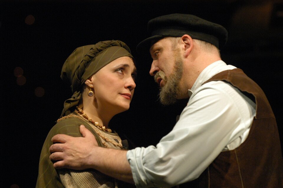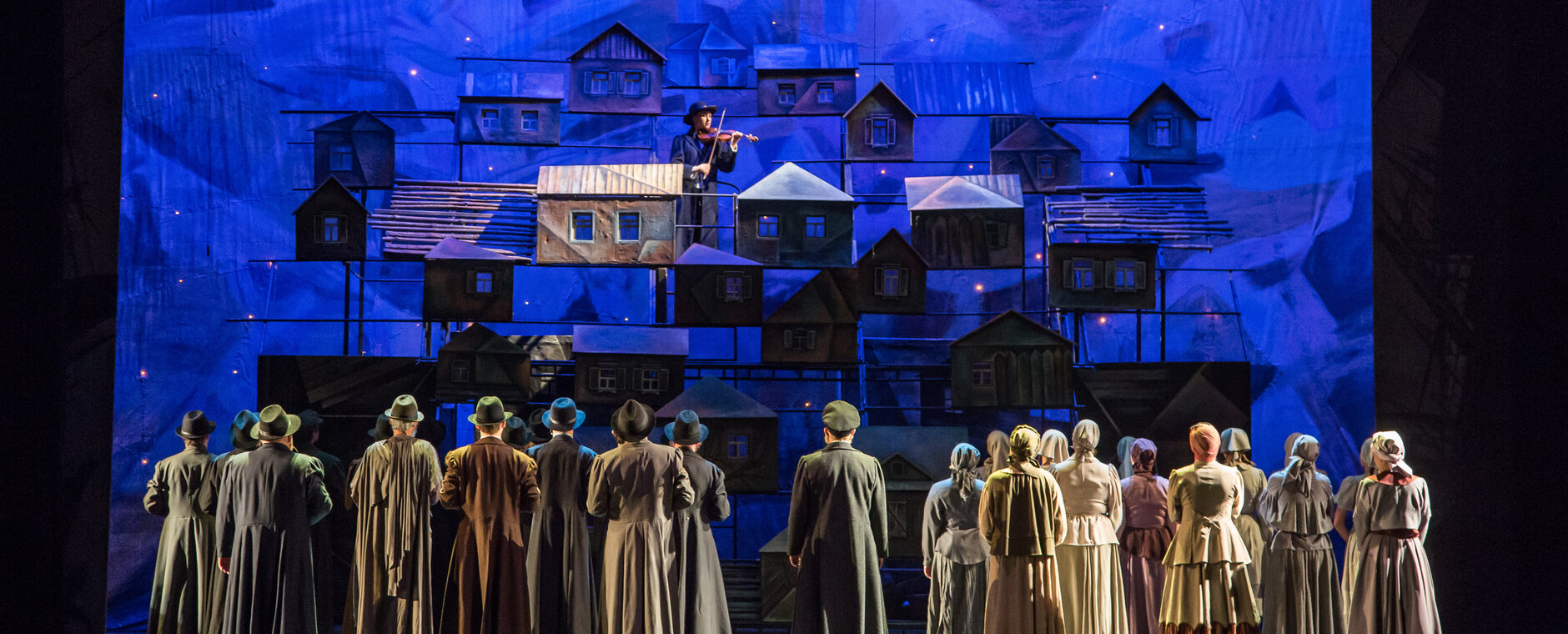 Это трогательная и жизнеутверждающая история о жителях местечка Анатовка на юге России, где на протяжении многих лет живут в соседстве русские и евреи. Здесь живет и Тевье-молочник со своими дочерьми. Все они строго чтут обычаи, без которых жизнь их была бы так же неустойчива, как скрипач на крыше. Но времена меняются, и дочери Тевье наперекор традиции сами решают свою судьбу. Что ждет их? Вечное странствие жизни, в котором сплетаются воедино печаль и радость, смех и слезы. Спектакль насыщен музыкой, песнями, танцами; наполнен юмором, житейской мудростью и добротой. Этот спектакль о любви, о национальном достоинстве человека. Премьера состоялась в 1998 году.