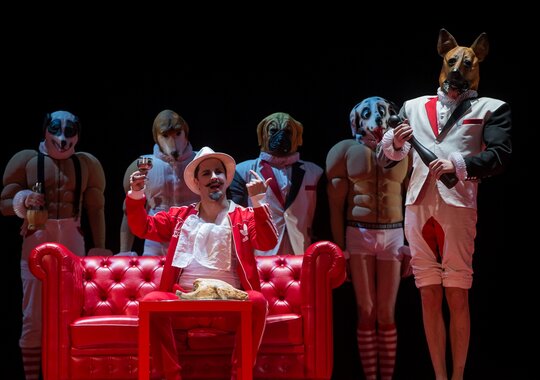 Вслед за драматургом режиссёр выстраивает сюжет о Катарине и Петруччо как театр в театре, как театральное представление внутри спектакля, где всё — веселая, шумная, неприкрытая актёрская игра, которой много музыки, юмора, озорства и иронии; где вся жизнь — игра, а весь мир — театр.