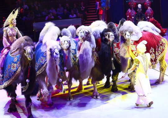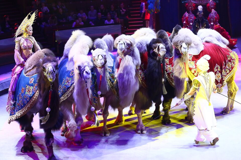 Во время представления абсолютно каждый сможет побывать в разных историях: всё начинается с восточного базара, плавно переходящего к путешествию во дворец Шейха и каравану величественных верблюдов, которые рисуют витиеватые узоры на манеже. А оказавшись в пустыне, зрители вместе с главным героем увидят завораживающих скорпионов – акробатов на джамперах, после чего очутятся в замке самой настоящей принцессы, которая играет с самоедами и далматинами. Зрители попадут в «логово паука», где акробаты на мачте выполняют головокружительные трюки, а также воображение аудитории впечатлят групповые жонглеры на моноциклах и многое другое! Каждый номер в шоу достоин отдельного внимания. Чего только стоит уникальный номер жонглеров-эквилибристов на шарах, аналогов которому нет в мире! На манеже представлены различные жанры — от эквилибра и акробатики до дрессуры.
