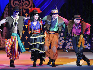 Тех, кто любит сказки и весёлые приключения, кто готов окунуться в волшебный мир детства, театр приглашает на яркую премьеру мюзикла Геннадия Гладкова «Бременские музыканты». Вместе с зажигательной пятёркой зрители смогут пережить все перипетии их бродячей жизни, перехитрить злых и кровожадных разбойников, обмануть их Атаманшу и украсть принцессу из дворца прямо из-под носа Короля, провести вокруг пальца Сыщика и порадоваться за Трубадура.