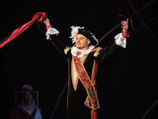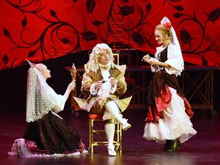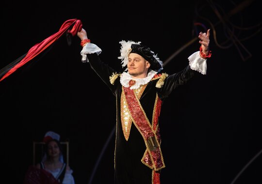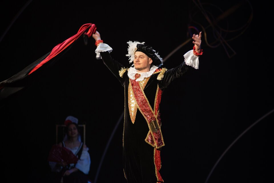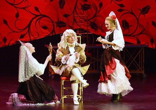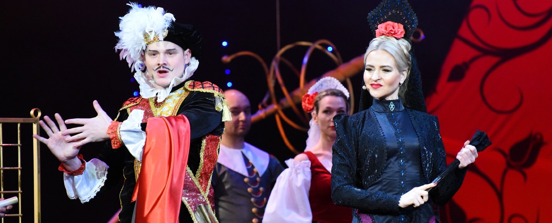 Хорошо знакомая зрителям по фильму «Собака на сене» история любви графини Дианы и её секретаря Теодоро вновь оживает. Испанский драматург Лопе де Вега написал комедию «Собака на сене» более четырёх столетий назад. Но и сейчас, когда преграда сословных различий не знакома современной публике, эта история находит отклик в сердцах и душах людей. История о том, что на самом деле неисповедимы пути любви. О том, что толчком к симпатии может стать банальная ревность, и о том, что гордость и своенравие могут очаровать не меньше кротости и покорности. А ещё — это искромётная комедия, которую так легко разобрать на цитаты. Мюзикл-оперетта «Собака на сене» — настоящий театральный праздник. Здесь всё сошлось — режиссёрское решение, хореография, сценография, костюмы, конечно, музыка и игра актёров.