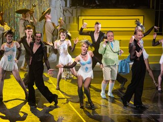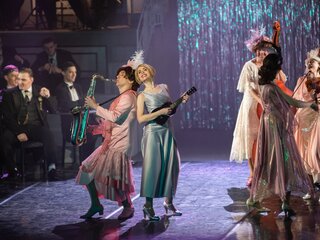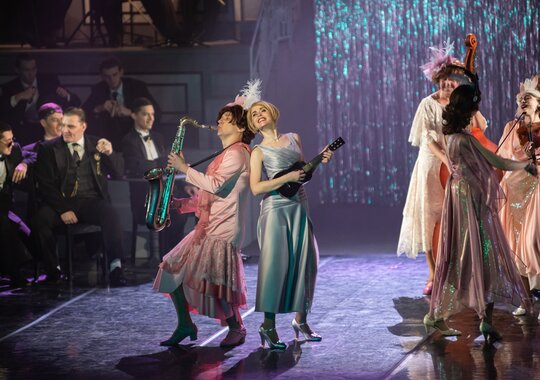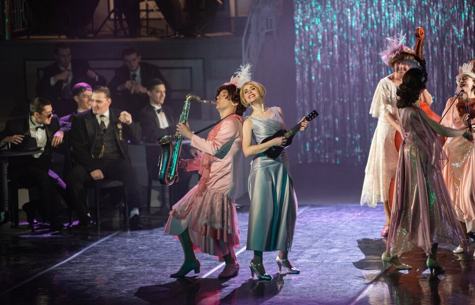 Комическая история о приключениях двух музыкантов, скрывающихся от бандитов и попавших в женский оркестр, переодевшись в дамские платья, в нашей стране известна благодаря знаменитому фильму Б. Уайлдера «В джазе только девушки». Создатели одноименного мюзикла, несомненно, вдохновились одной из лучших кинокомедий в мире, однако создали самостоятельное произведение с легкой, динамичной музыкой и текстом, в котором столько острот, что он непременно будет разобран на цитаты. История настоящей дружбы, истинной любви, веры в себя и преданности своему делу рассказана артистами Музыкального в стиле джаза — непринужденно, играючи. В спектакле звучит «живая» музыка оркестра, который расположен на сцене и принимает участие в действии, а хор и балет становятся единым ансамблем, исполняющим джазовые ритмы. Солисты Музыкального совершают настоящие чудеса перевоплощения из мужского образа в женский и ставят рекорды по скорости переодевания. Эта легкая, искрящаяся и лихая история подхватывает зрителя и заставляет следовать за любимцами судьбы Джо и Джерри, как они, влюбляясь в жизнь и смотря на мир распахнутыми глазами.