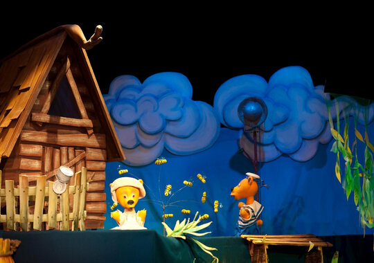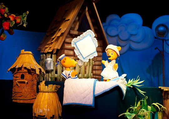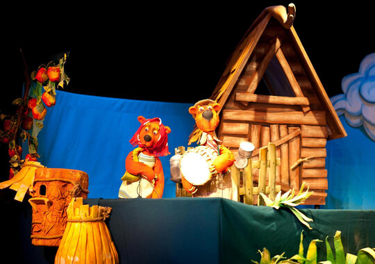 Над этой сказкой работал тандем авторов-дальневосточников. Художник Сергей Ким придумал веселых персонажей этой истории. Композитор Дмитрий Голланд написал песенки для медвежат, а поют они много: зарядка – с песней, умываться – с песней, играть – с песней.