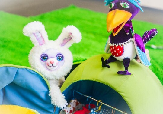 Сказка-игра «Заинька» стала первой в череде мини-спектаклей самого волшебного места в нашем театре — «Полянки сказок». Каждый элемент этой сказки — произведение искусства мастериц Театра кукол. Никаких серийных игрушек — только ручная работа, только уникальные персонажи и декорации.