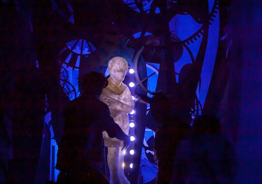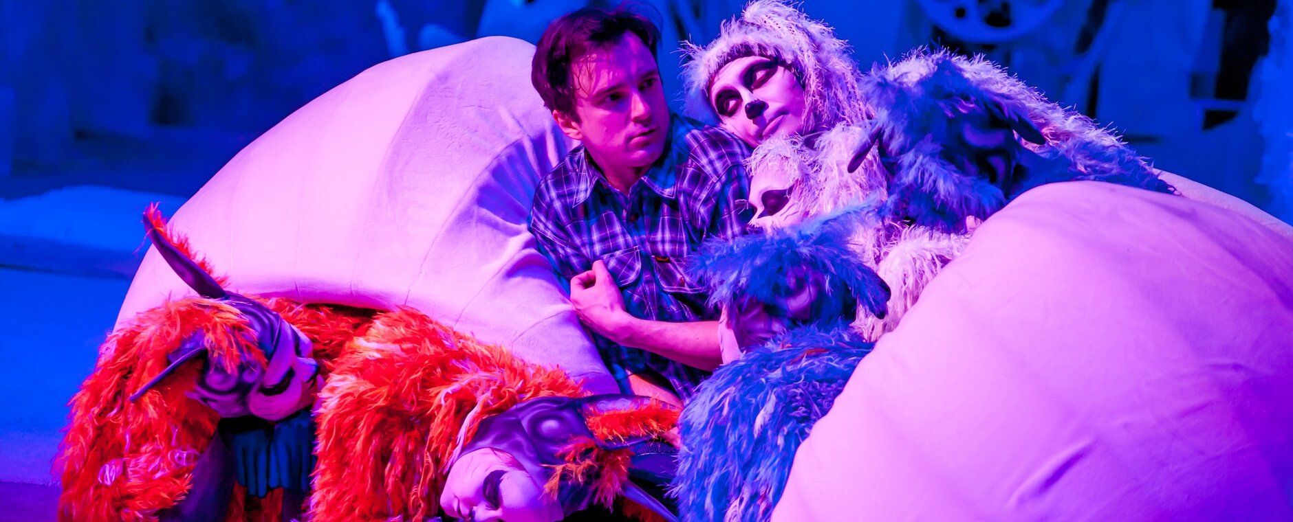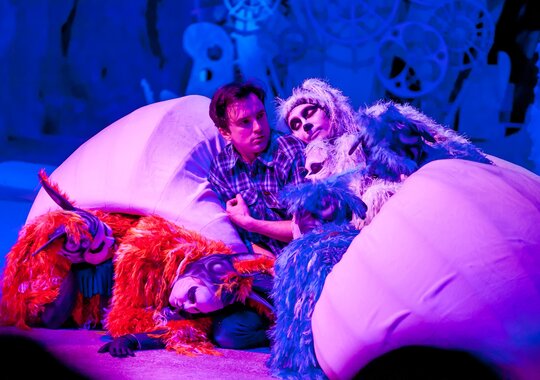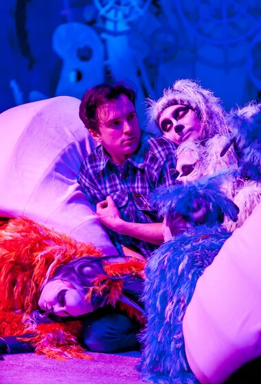 Создатели спектакля выбрали близкий сегодняшним детям язык с использованием мультиэкранов и спецэффектов, что позволяет реальным героям на сцене оказываться в волшебном мире благодаря не только театральной условности, но и сочному визуальному решению.