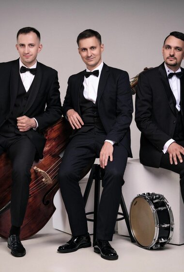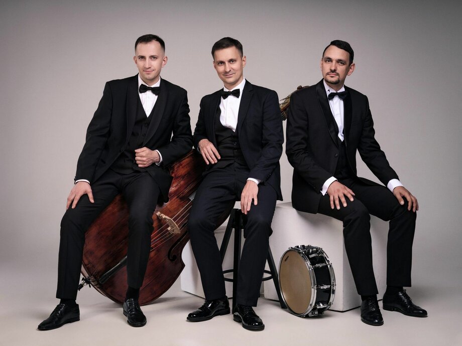 «Джазовое трио Александра Маслова» (Санкт-Петербург): лауреаты всероссийских и международных конкурсов Александр Маслов (фортепиано), Филипп Мещеряков (контрабас), Павел Чижик (ударные, вибрафон).