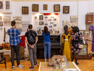 В ходе экскурсии вы посетите музей Кировского драмтеатра, где вас ждёт интересный рассказ об истории зарождения профессионального театрального дела на Вятке и о создании Кировского областного драматического театра — одного из старейших театров России, основанного в 1877 году. В театральном музее можно увидеть подлинные театральные афиши XIX века, предметы артистического быта, познакомиться с архивными фотографиями и документами.